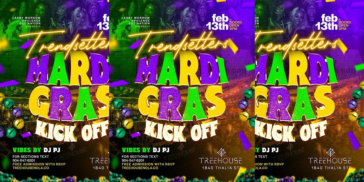 Trendsetters Mardi Gras Kickoff goes down at Treehouse NOLA on Friday, Feb 13th.About this Event