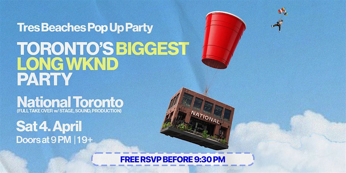 Tres Beaches & Friends are bringing the PARTY to TORONTO at NATIONAL — for the biggest party in the city. If you like high energy & an insane time, this is the party for you.