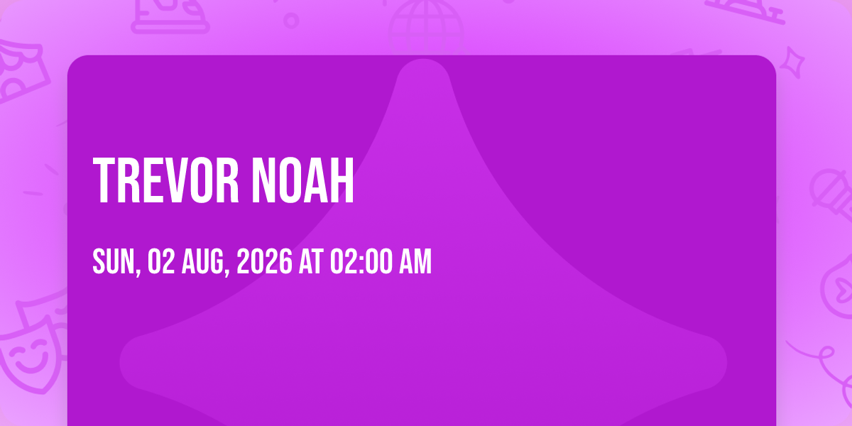 📍 Location: 34.4327, -119.694✨ Enter a world of endless possibilities at Trevor Noah, where every moment tells a story! 🏛️ The stunning Santa Barbara Bowl in vibrant Santa Barbara, CA transforms into a realm of wonder on August 3rd, 2026 at 02:00 AM. 🌟 They have crafted an experience that goes beyond the ordinary, combining elements of surprise, delight, and pure entertainment. Every detail has been thoughtfully considered to ensure your journey with us is nothing short of extraordinary. 🎯 Join fellow adventure seekers and memory makers in this celebration of imagination and innovation. 🎊 Reserve your spot today and be part of something truly special!