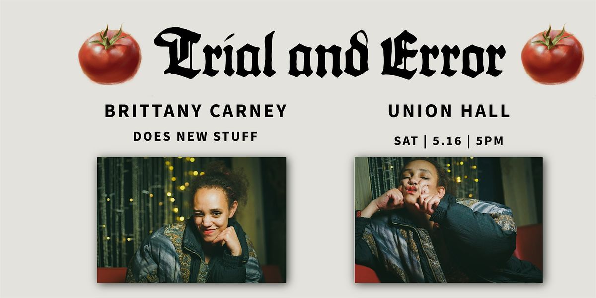 Brittany Carney (Adult Swim, HBO) presents material new and semi-new, as she builds her next hour of standup.Join Brittany and some friends (which she has) for an early evening of jokes, play, and process—then sod off and enjoy dinner somewhere.