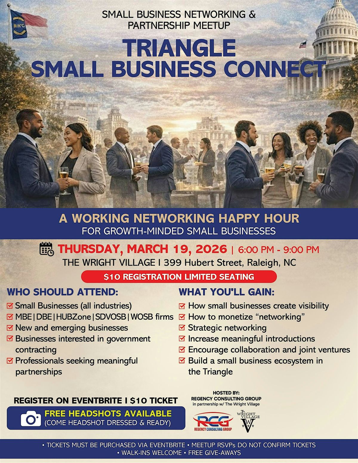 Join us for the Triangle Small Business Connect! 🤝 A working networking happy hour for growth-minded small businesses ready to build real partnerships, increase visibility, and explore collaboration and government-contracting opportunities.