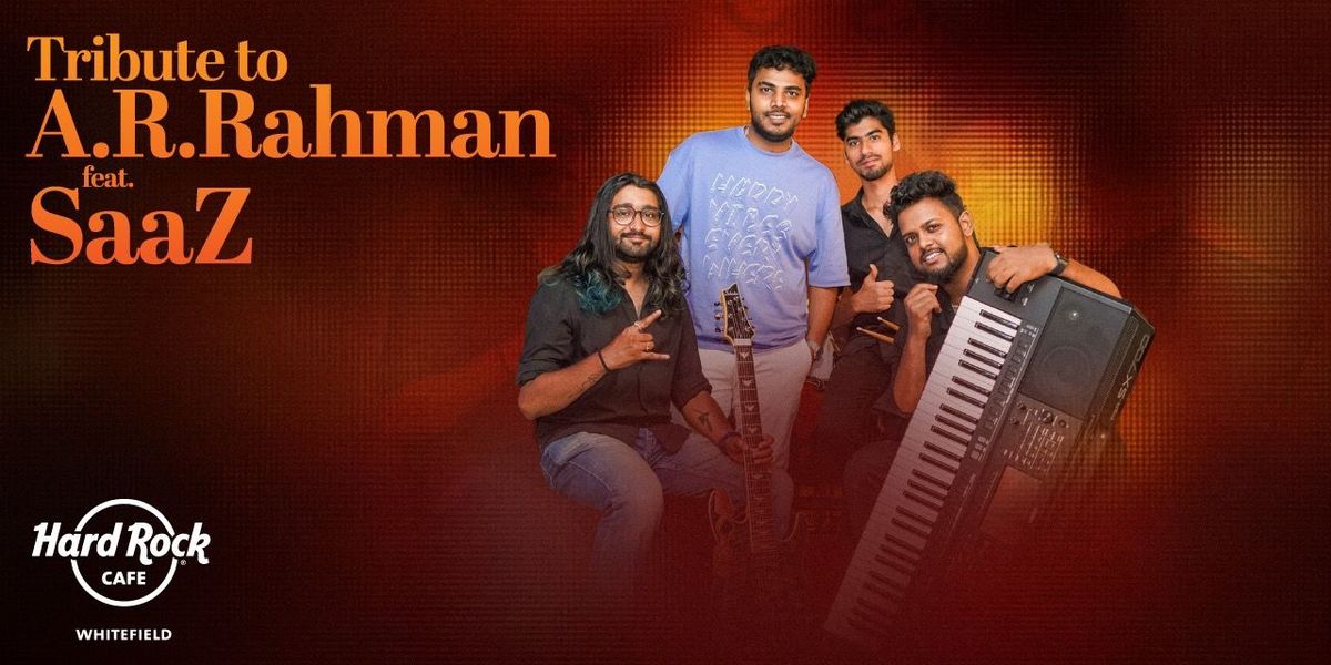 Step into an evening of timeless melodies and soulful nostalgia as Saaz pays tribute to the musical genius of A.R. Rahman.