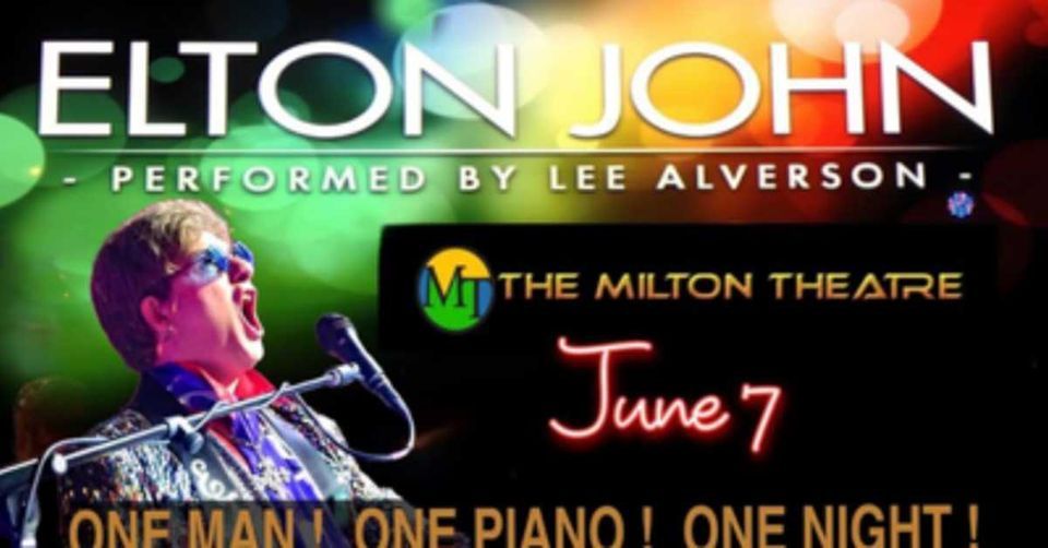 One Man! One Piano! One Night!Lee Alverson brings his award-winning “One Man, One Piano, One Night " Show featured in Las Vegas to the Milton Theatre - performing in character as two legendary British Artists in one hit-packed show! Enjoy the musi of superstar Sir Elton John! You won’t want to miss this intimate and exciting show!About Lee Alverson