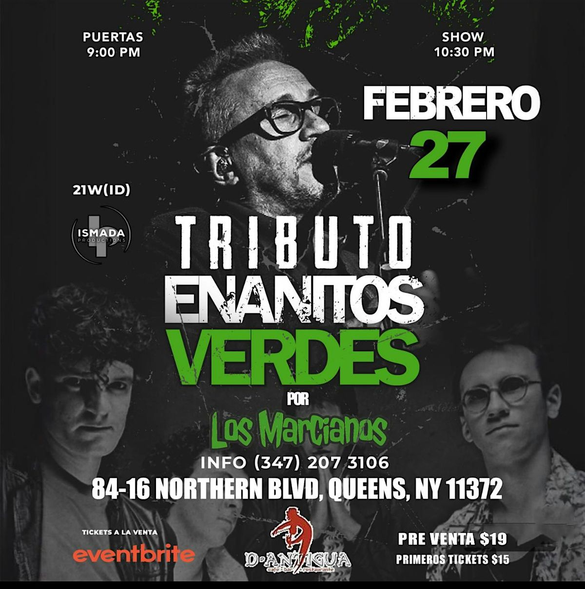 Prepárate para una noche inolvidable de rock en español con un espectacular tributo a Enanitos Verdes, interpretado EN VIVO por Los Marcianos.