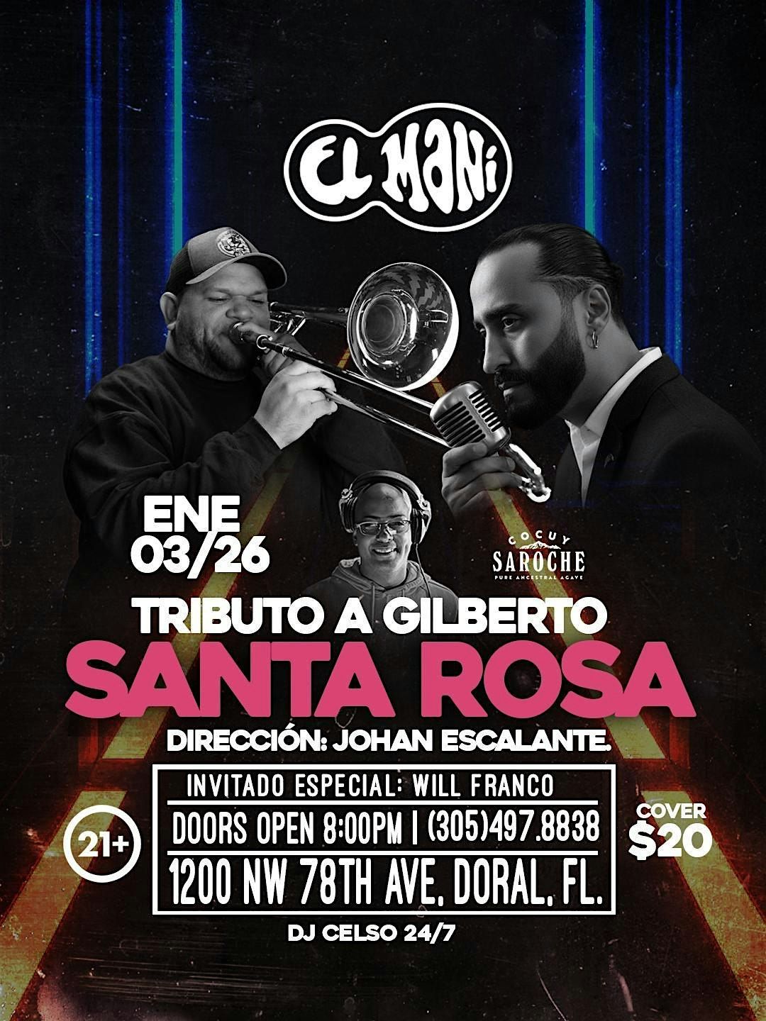 Sabado 3 de enero Celebrando el comienzo de Año estaremos haciendo el tributo a Gilberto Santa Rosa Dirigido por Johan Escalante.