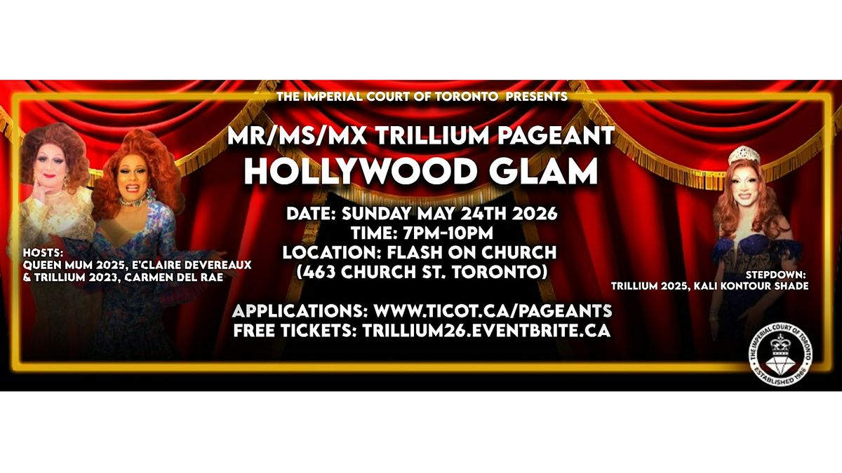 Join TICOT for an unforgettable experience at the Trillium Pageant 2026 - "Hollywood Glam". Expect dazzling performances, amazing talent, and opulant pageantry where you can cheer on your favourites! Don’t miss out on this exciting event that brings everyone together for a night full of glitz, glam, energy and competition!