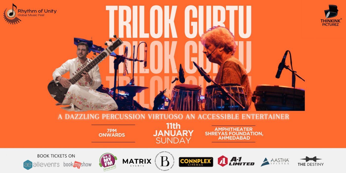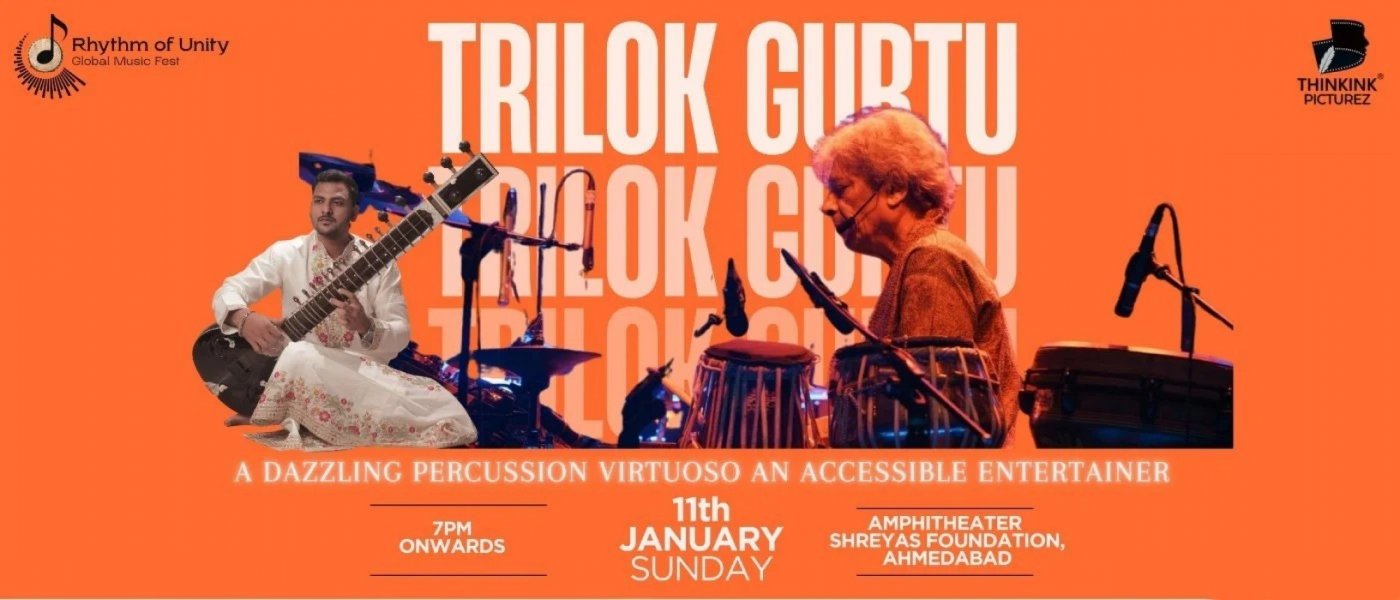 Rhythm of Unity Global Music Fest to start from 11th January 2026. "Thinkink Picturez Ltd" is bringing the legendary artist Shree Trilok Gurtu on 11th January, 2026, Sunday to Ahmedabad.