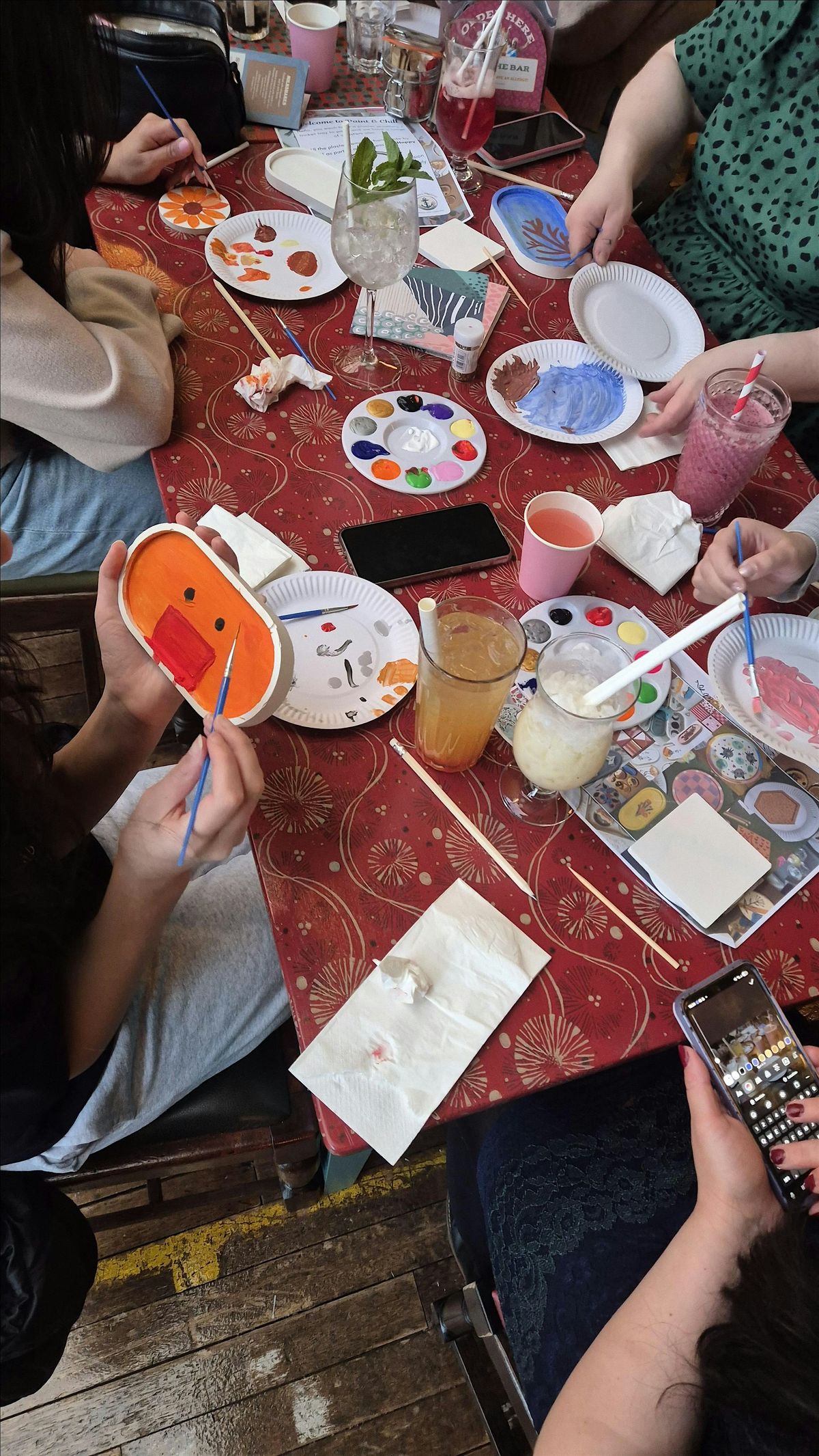 We provide everything you need for a calm, warm, and social evening (groups, friends, and solo painters welcome) - plus grab something tasty or a homemade drink from the bar to enjoy alongside your decorating.