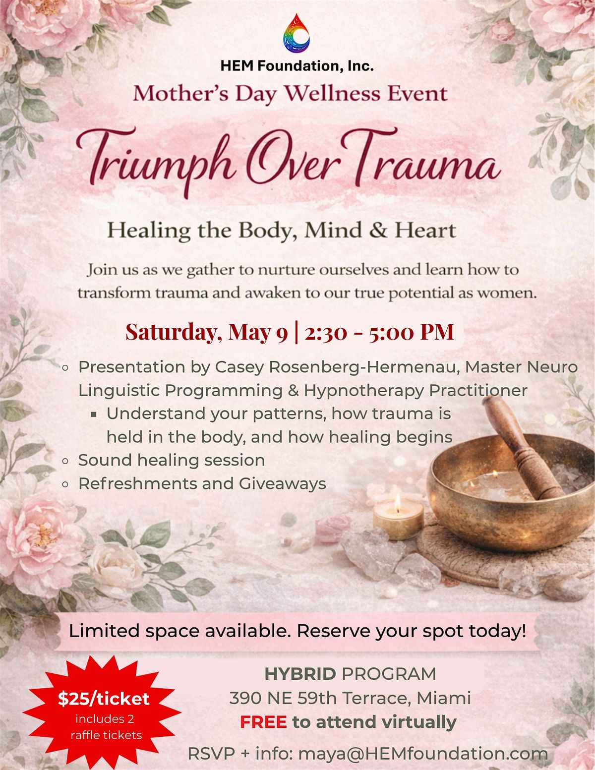 This program provides a clear, research-informed overview of how the mind works, including how subconscious patterns are formed and how past experiences continue to shape behavior, emotional responses, and overall well-being. Participants will gain practical insight into why people behave the way they do and how these patterns can be shifted.