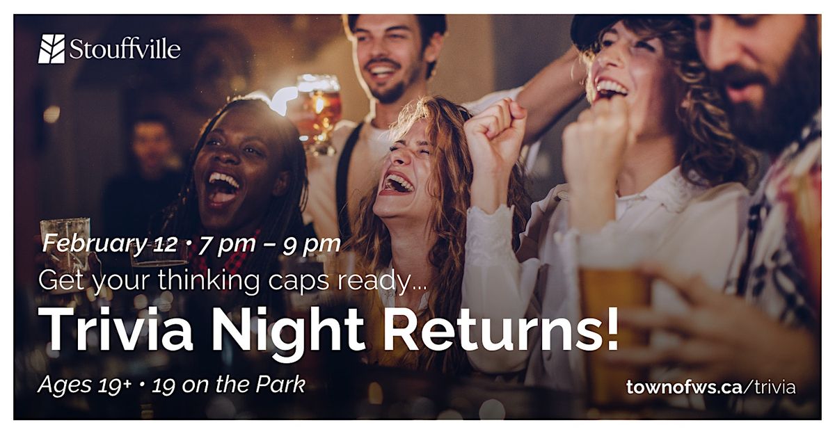 Back by popular demand, you don’t miss this exciting full-service event at 19 on the the Park. Gather your closest friends for some friendly competiton, prizes for trivia champions and doors prizes throught for added excitement. Cash bar available onsite.