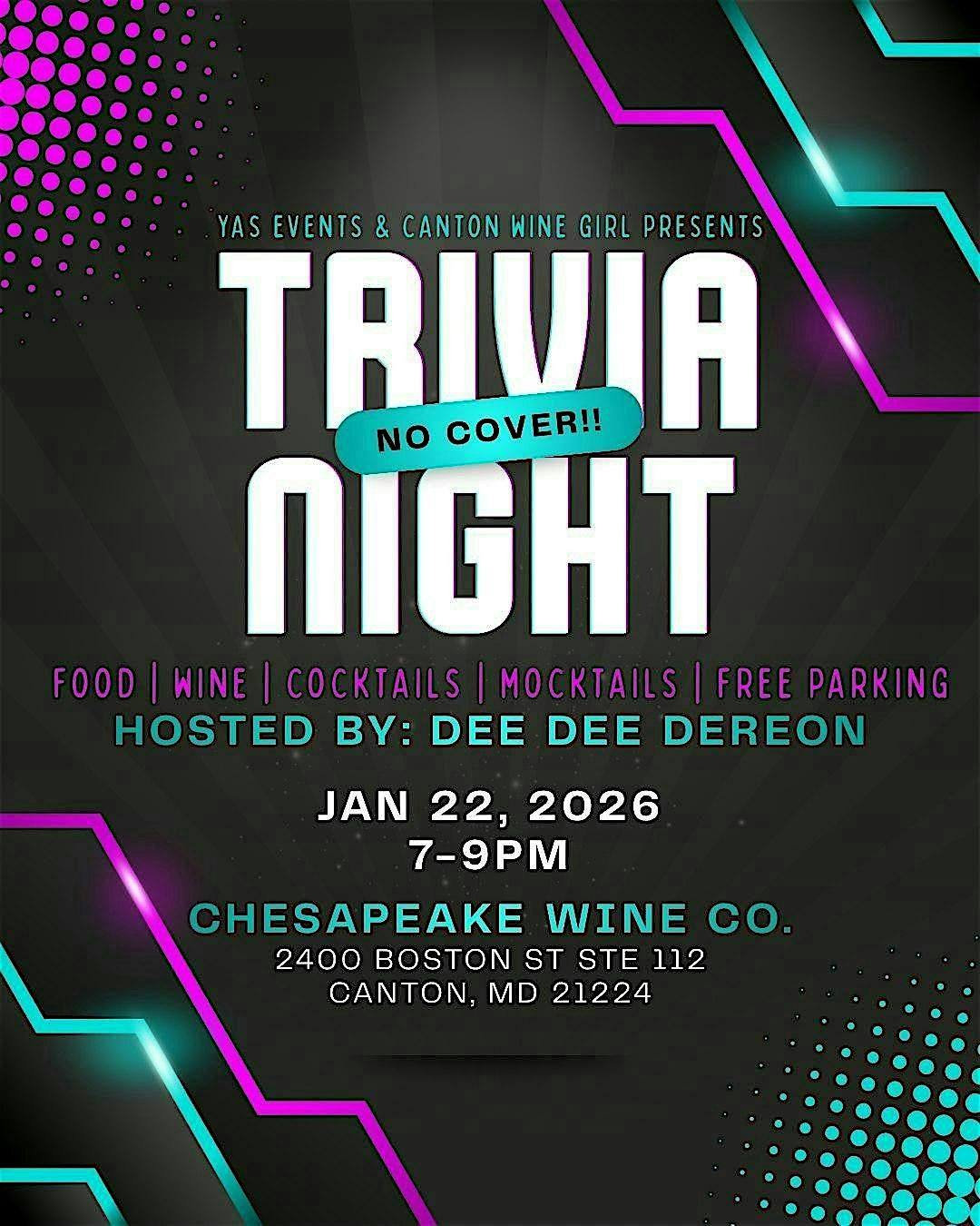 Join YAS Events and Canton Wine Girl for the FIRST EVER TRIVIA NIGHT! The evening hosted by Dee Dee Dereon!
