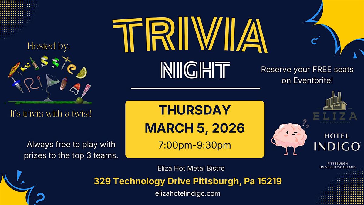 Grab a seat, grab a drink, and grab your trivia crew! 🍔🍻 Join us for Trivia Night with great food, flowing drinks, music all night, and general knowledge questions guaranteed to keep your table buzzing.