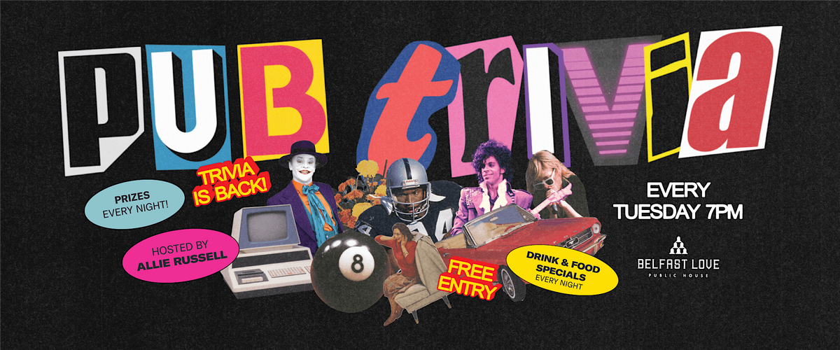 The people asked and we answered, King Street's famous trivia is back and with better prizes, better drink and food specials and an AMAZING HOST! Local comedian Allie Russell will be ruling the roost every Tuesday at everyone's favourite King Street watering hole: Belfast Love Public House!