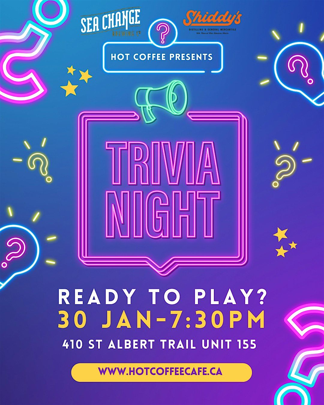 Think you’ve got what it takes to be the trivia champ of St. Albert? ✨Book -https://www.hotcoffeecafe.ca/service-page/trivia-night