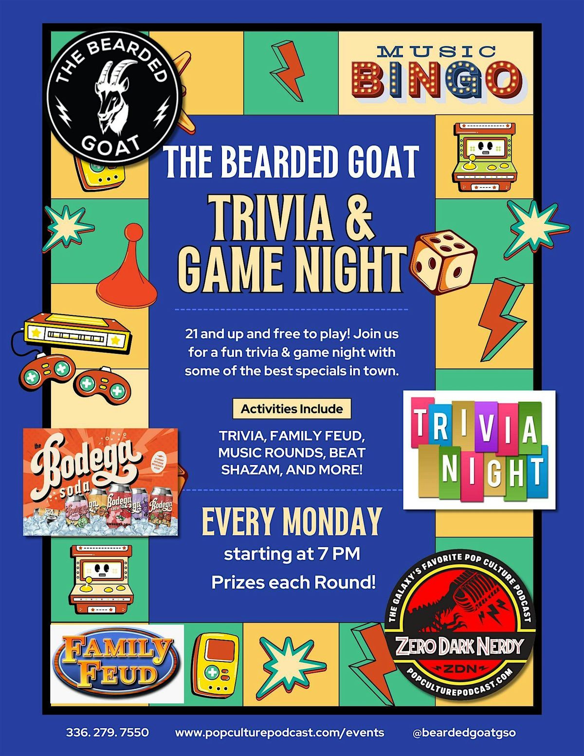 Bring your crew, grab a drink, and let’s kick off the week with some nerdy fun. See you at The Bearded Goat!