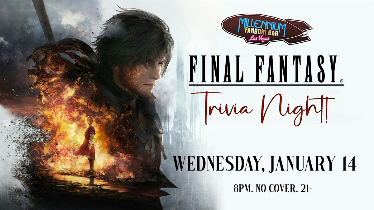 WEDNESDAY JANUARY 14 at 8pm: is the fun MONTHLY TRIVIA NIGHT at the FANDOM BAR - Las Vegas with a Special FINAL FANTASY Video Game Trivia! Bring your team of 5/6 participants, your fun vibes, and win cool prizes!