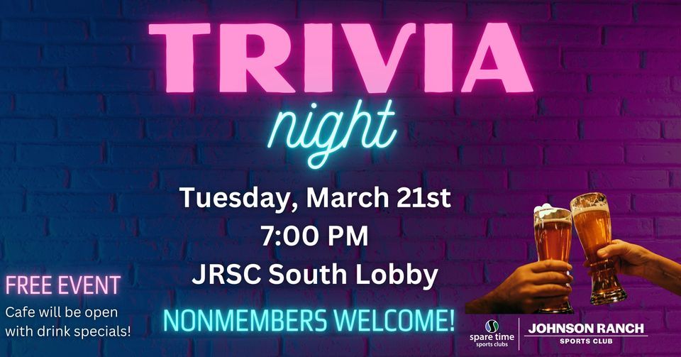 Join us for Trivia Night!Johnson Ranch Sports Club is located in Roseville at 2600 Eureka Rd.