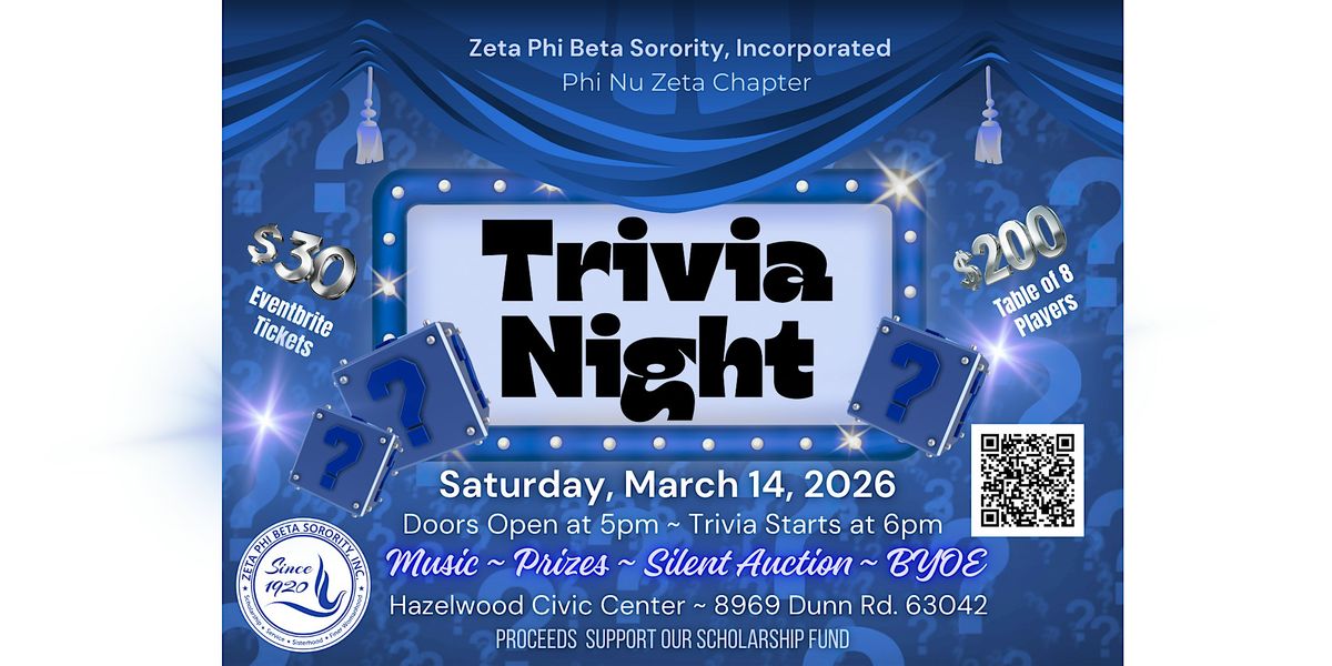 Join us for a night of trivia, music, prizes, and fellowship as we raise money to support our scholarships. Create your team and compete in our high-stakes, eight round trivia competition. This year's theme is Daytime and Primetime Television. Enter the dance battle, bid on a gift in the silent auction, or try your luck with the 50/50 raffle. Bring your own snacks and beverages. The party begins at 5pm and trivia starts promptly at 6pm. You are sure to have a great time.