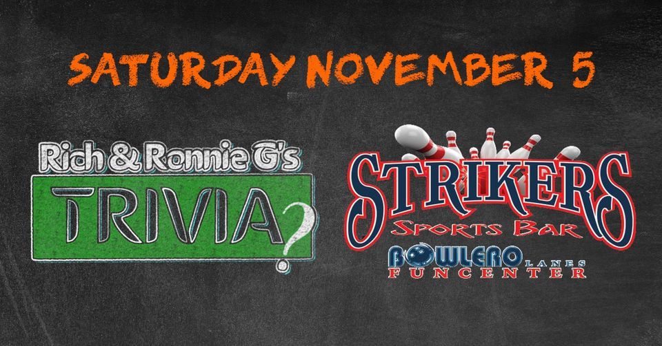 Form a team and join Rich & Ronnie G for a special night of trivia Saturday, November 5 at Bowlero Lanes!This isn't your average trivia. Enjoy over 50 questions spread across five categories. The categories change every week and include things like history, music, movies, and more!
