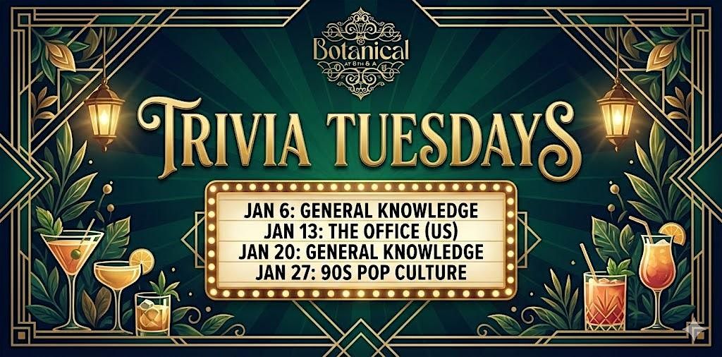 Get ready to flex those brain muscles every Tuesday! Join us in person for Trivia Tuesdays, where we dive into all kinds of fun and challenging general knowledge questions. Whether you're a quiz whiz or just in it for laughs, it's the perfect way to break up your week, meet new people, and maybe even discover some cool facts you never knew. Bring your A-game and let’s see who takes home the trivia crown!