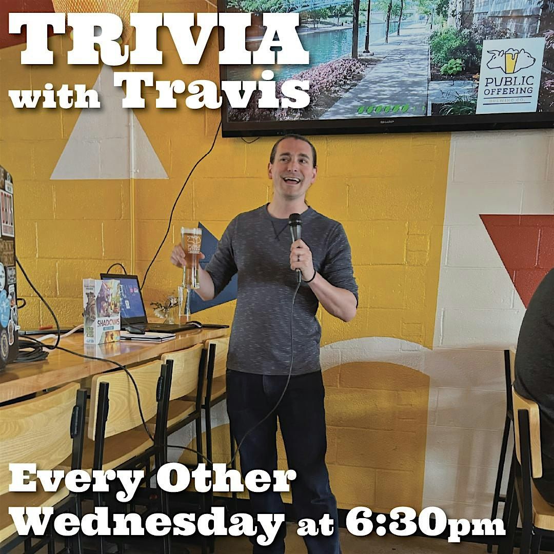 Come play trivia with Travis on Wednesday nights at 6:30PM. Gift cards to the top-3 teams and a food truck will be onsite.