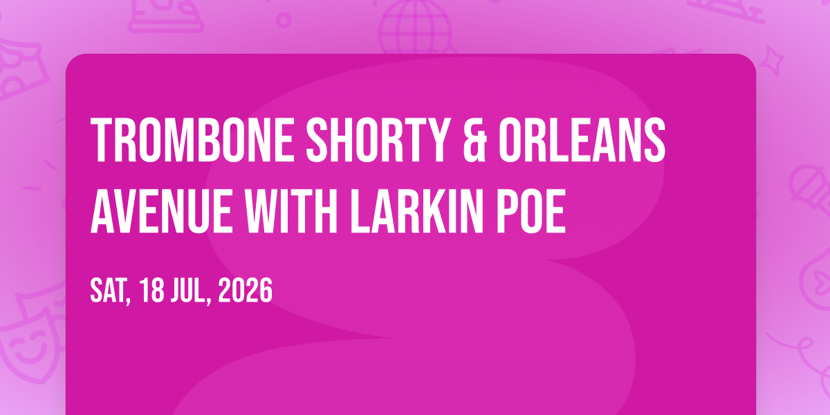 📍 Location: 39.9656, -75.1351🌟 Step into a world of wonder at Trombone Shorty & Orleans Avenue with Larkin Poe, where extraordinary moments await! 🏛️ Located at The Fillmore Philadelphia in dynamic Philadelphia, PA, this event will become the talk of the town. 📅 Join us on July 18th, 2026 at 12:00 AM for a celebration that defies the ordinary. ✨ This curated experience brings together the best of entertainment, culture, and community spirit. Every detail has been thoughtfully planned to ensure an unforgettable experience for all our guests. 🎯 Take advantage of this opportunity to be part of something special. 🎊 Early registration is recommended as space is limited!