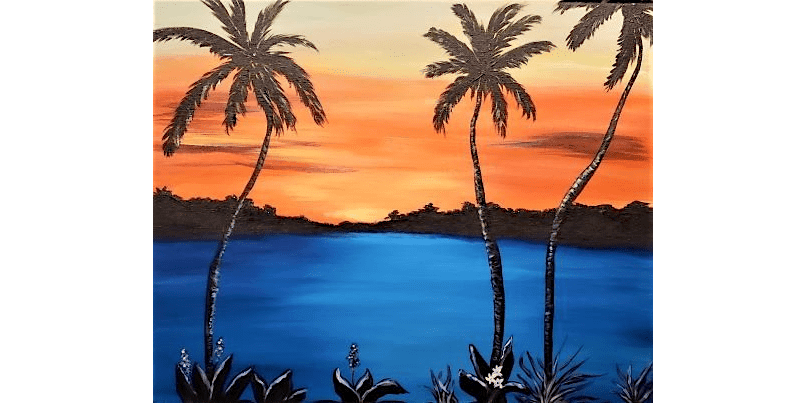Tropical Palm Sunset Scene - Paint and Sip in Sacramento | Classpop!™