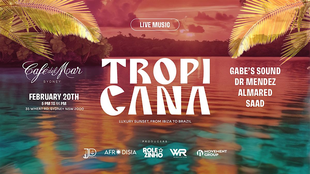 Welcome to TROPICANA, a warm, colourful and high-energy sunset session where tropical rhythms, Live band, house grooves and Latin heat meet the iconic waterfront vibes of Café del Mar Sydney.
