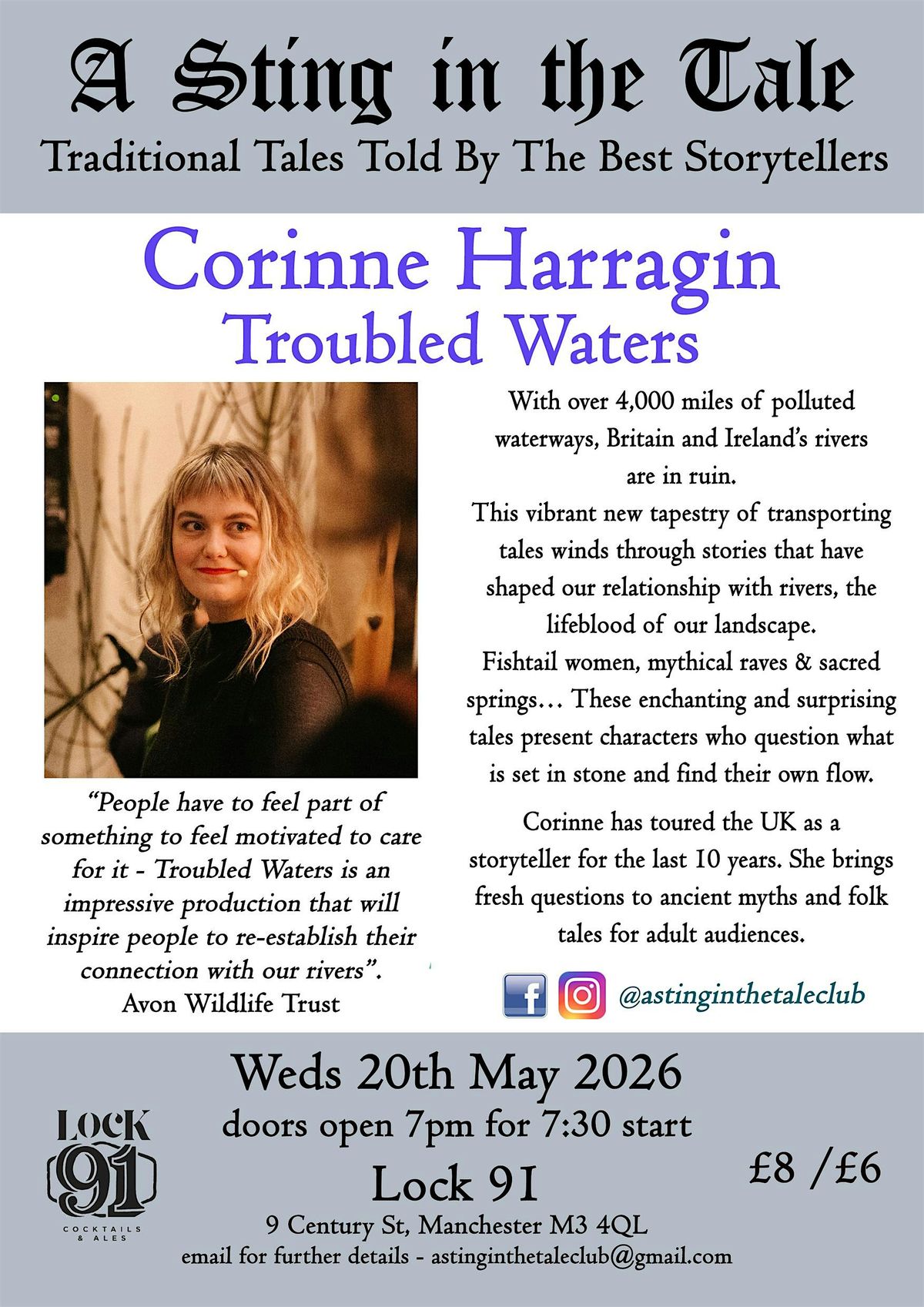 Doors 7pm for a 7.30pm start, finish 10pm.