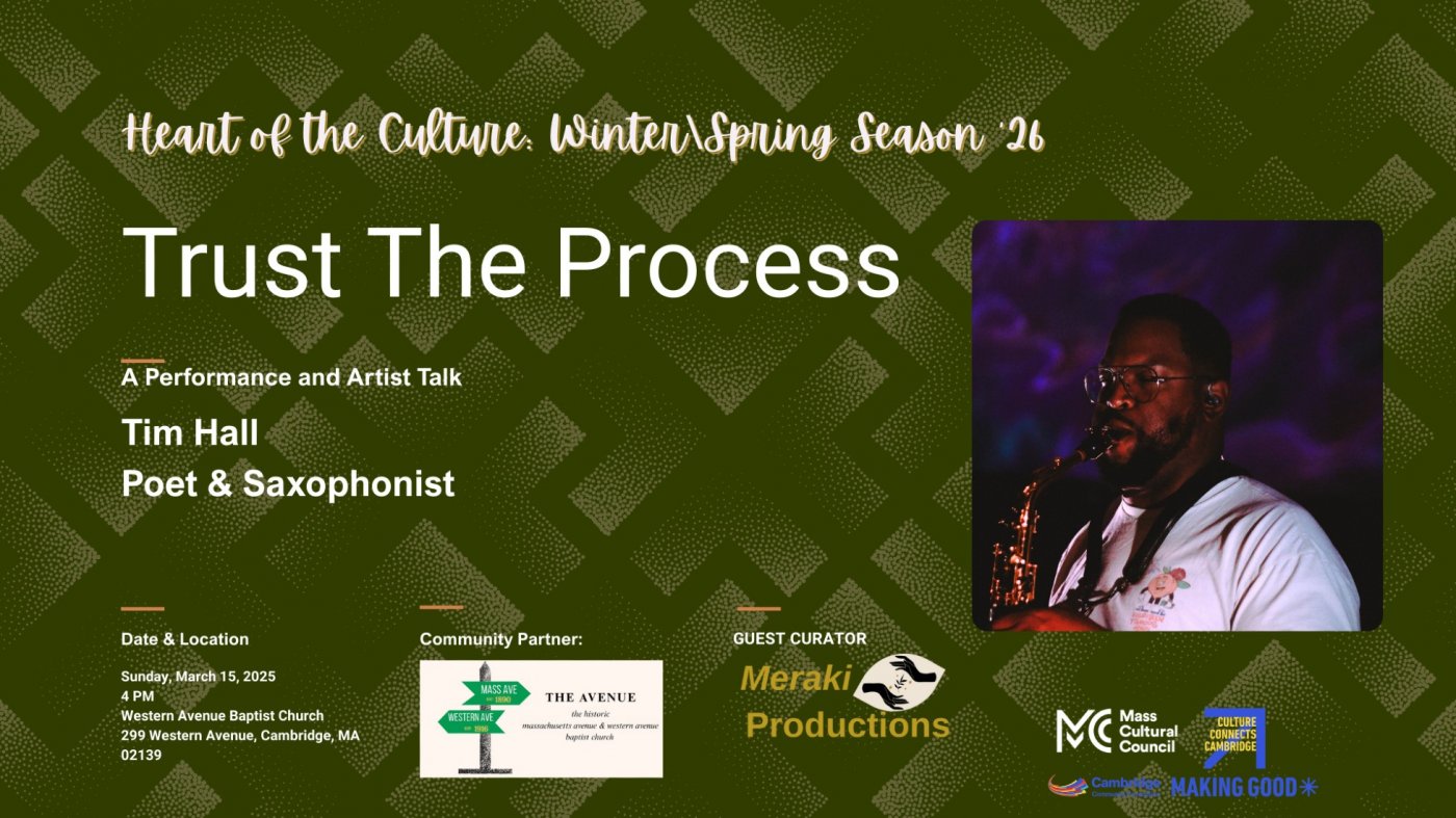 This event features poet and saxophonist Tim Hall. Join us as he shares work from his latest project Trust The Process.