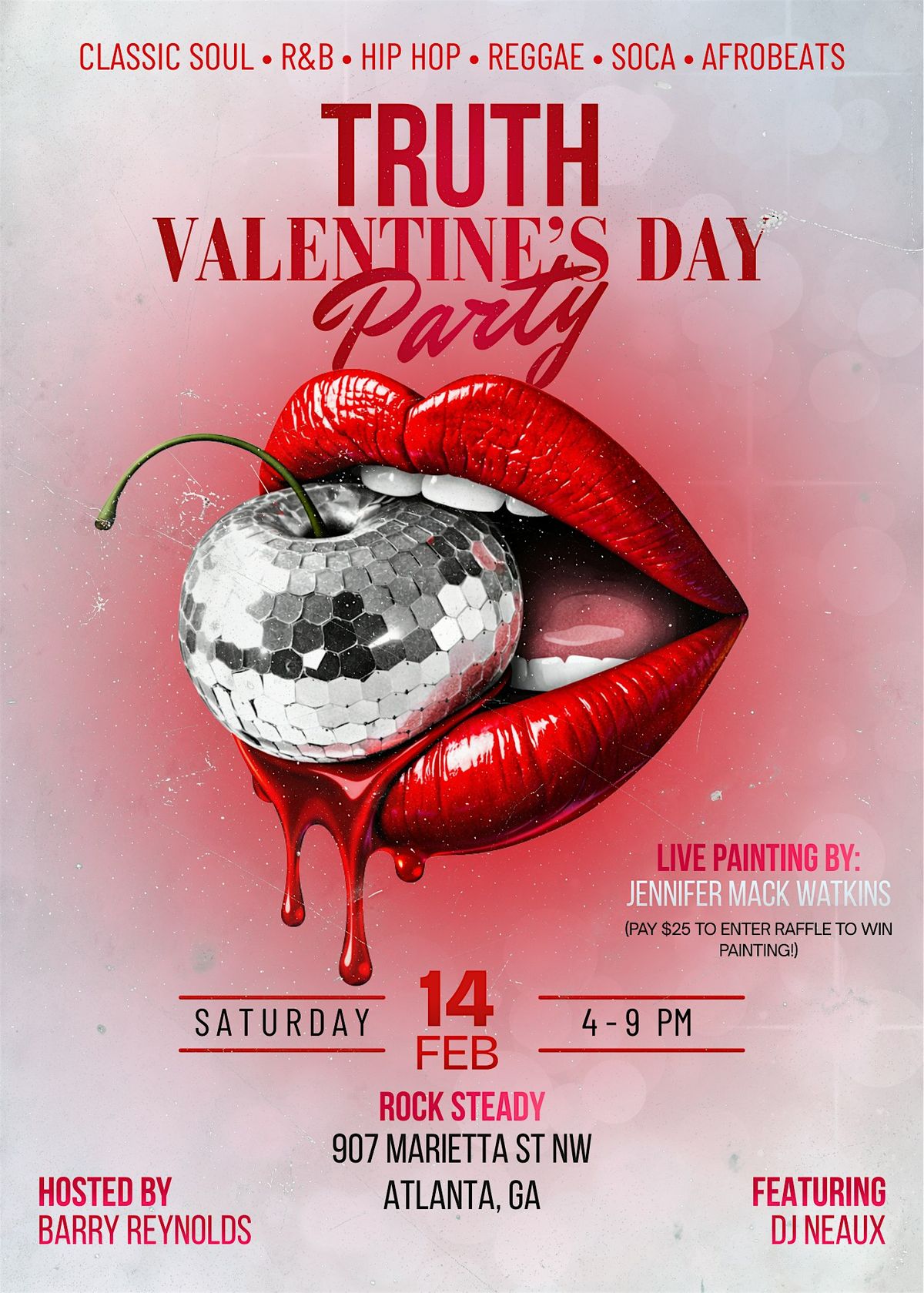 TRUTH - The Day Experience is an amazing event hosted and promoted by Atlanta's own Barry Reynolds with a proverbial (gumbo) mixture of hip hop, r&b, classic soul, reggae, soca & afrobeats by the incomparable DJ NEAUX. This event brings the sexy ambiance of Rock Steady's upstairs music gallery boasting an Afro-Carribean vibe with some of the best mixologists and sexiest vibes in the city of Atlanta. Bring out the grown, sexy and high energy for this one! Please remember this event is held Upstairs in the Music Gallery!