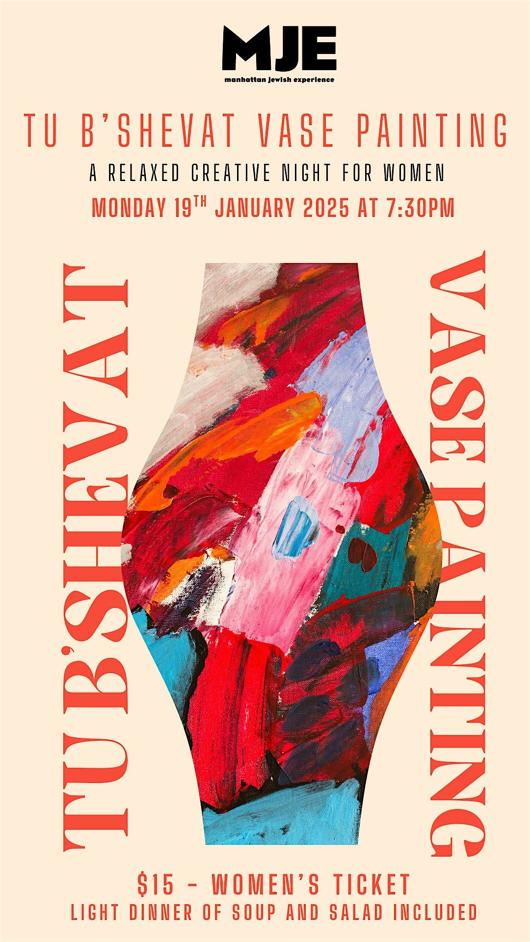 MJE invites women to a Tu B’Shvat vase-painting evening focused on creativity, connection, and themes of growth alongisde a light dinner of soup and salad.