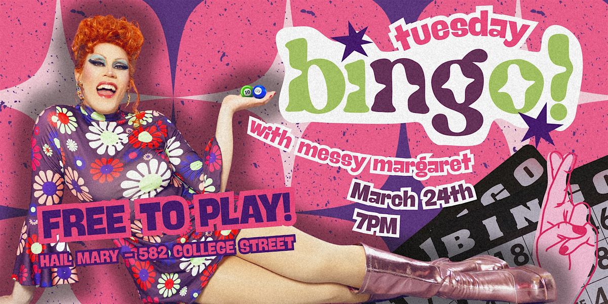 Looking for the perfect midweek pick-me-up? Join Toronto’s delightfully chaotic diva Messy Margaret for a night of camp, laughs, and bingo at Hail Mary.