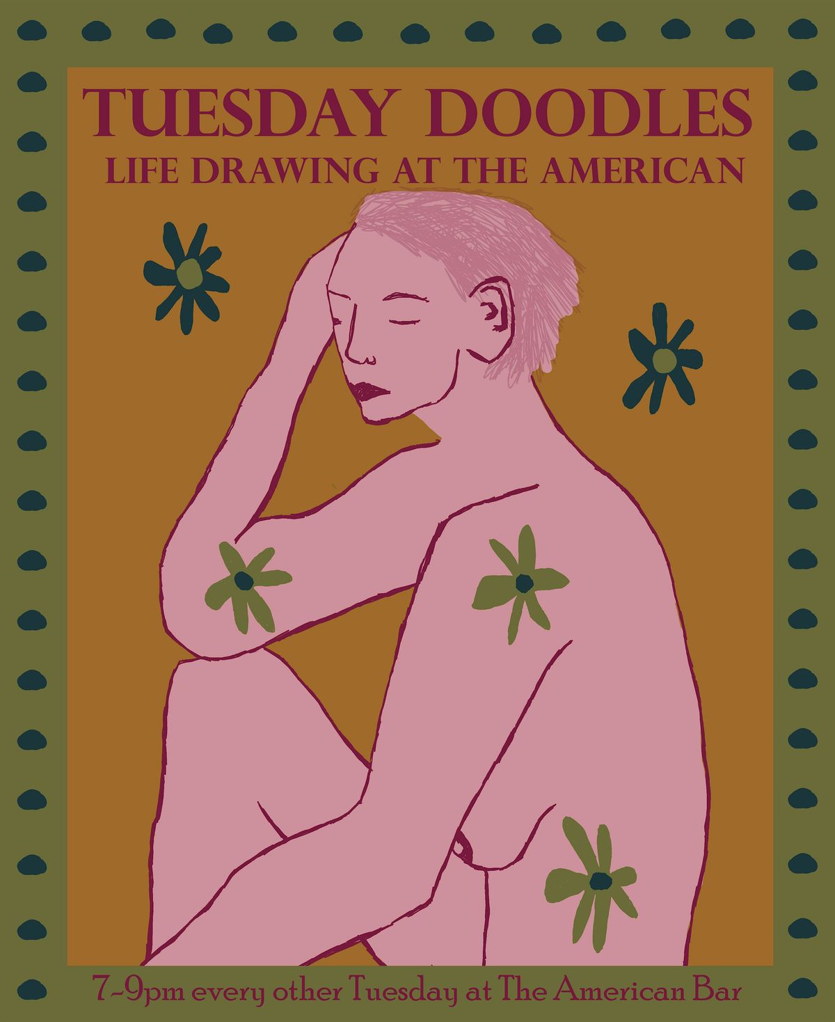 Relaxed, unguided life drawing sessions every 2nd and 4th Tuesday of the month from 7-9 pm at The American Bar.