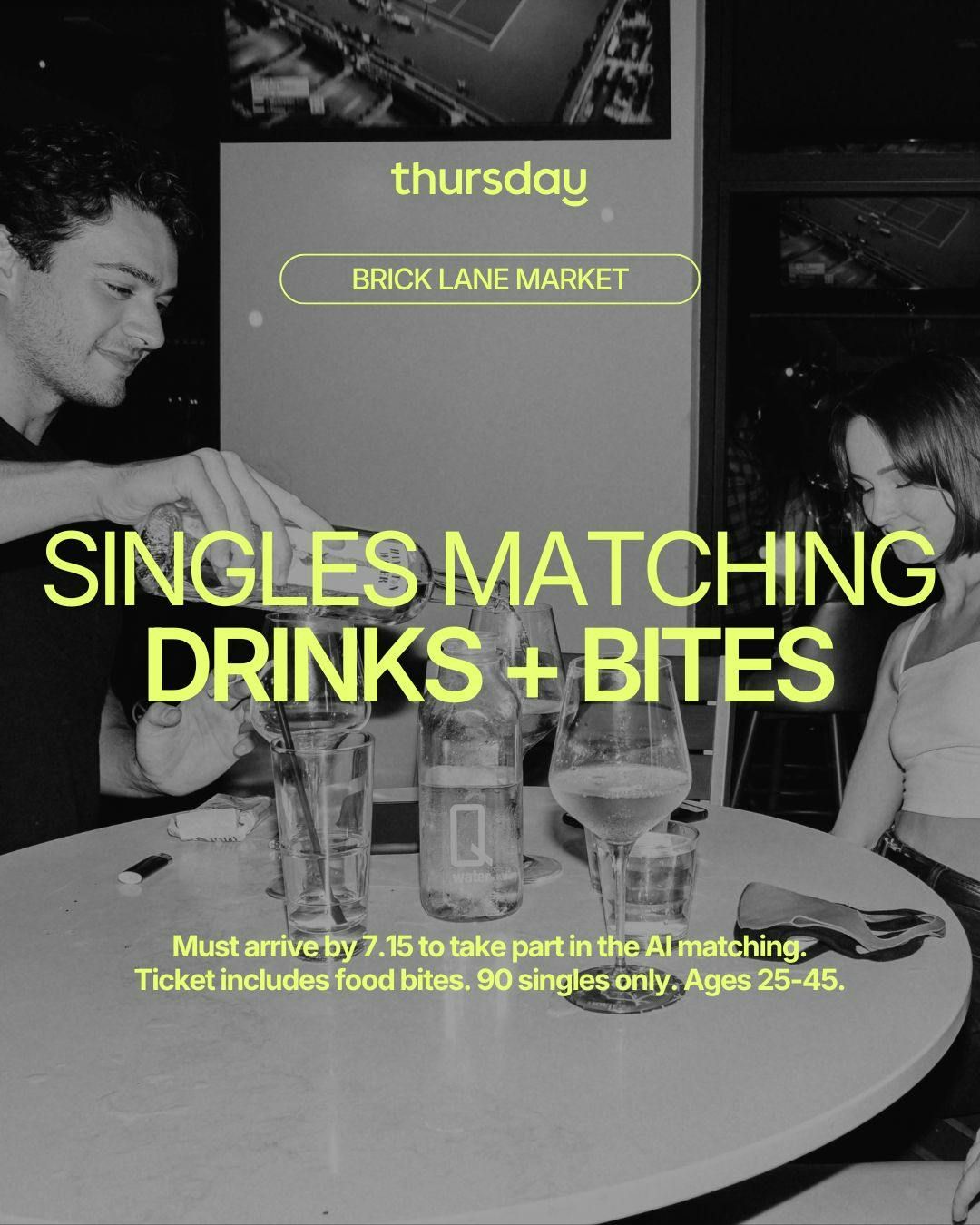 You must arrive by 7.15 to be part of the AI matching. Please DM @thursday.melbourne any dietiaries atleast 24 hours before the event starts.Â