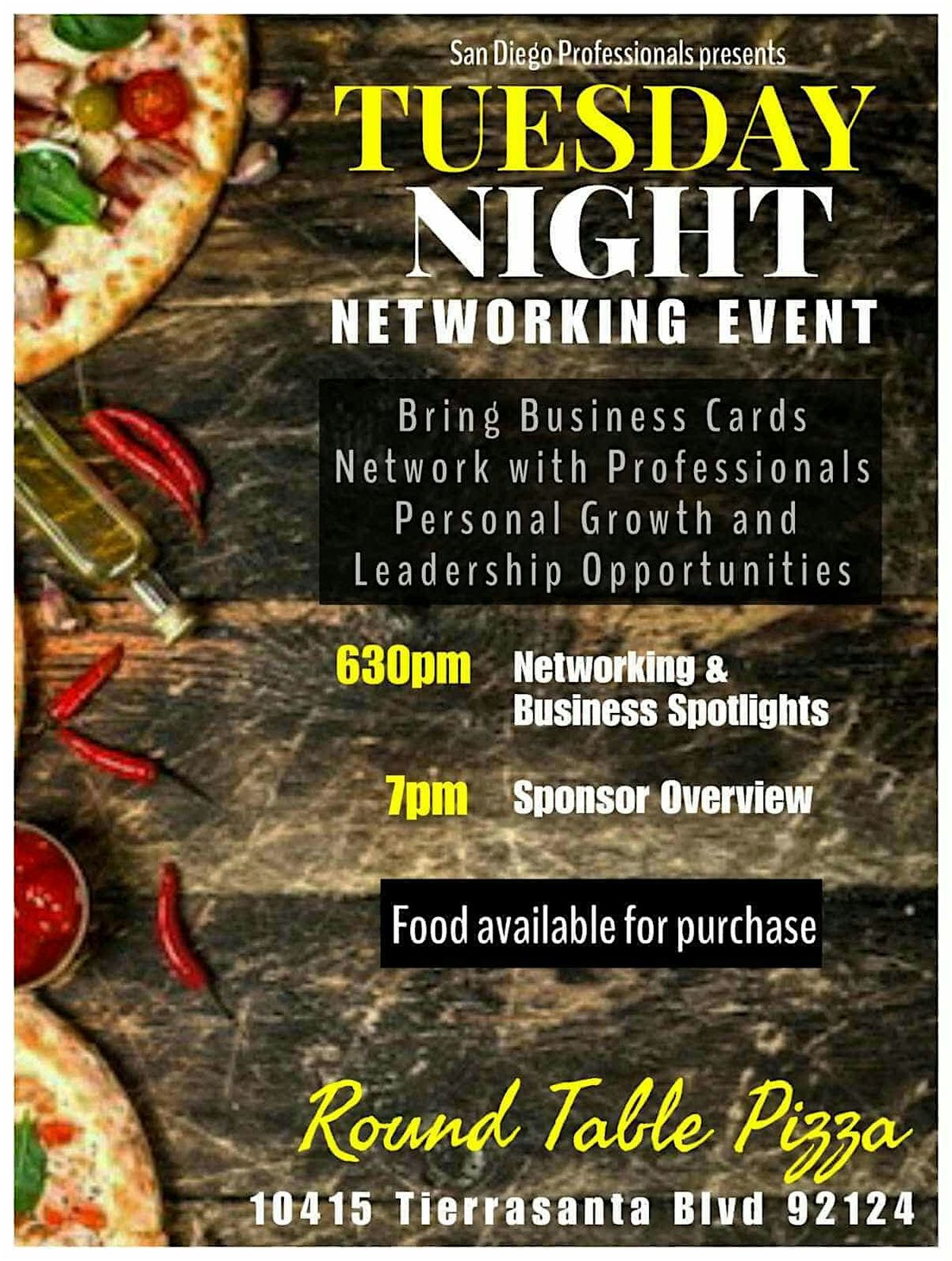 Join us for networking with local entrepreneurs, small biz reps, or searchers for work. Enjoy the conversation, free Pizza, & presentations.