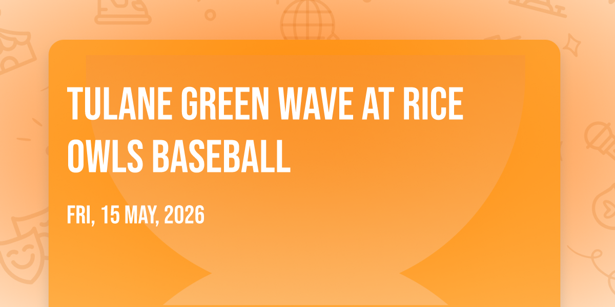 📍 Location: 29.7128, -95.4041🌟 Step into a world of wonder at Tulane Green Wave at Rice Owls Baseball, where extraordinary moments await! 🏛️ Located at Reckling Park in dynamic Houston, TX, this event will become the talk of the town. 📅 Join us on May 15th, 2026 at 11:35 PM for a celebration that defies the ordinary. ✨ This curated experience brings together the best of entertainment, culture, and community spirit. Every detail has been thoughtfully planned to ensure an unforgettable experience for all our guests. 🎯 Take advantage of this opportunity to be part of something special. 🎊 Early registration is recommended as space is limited!