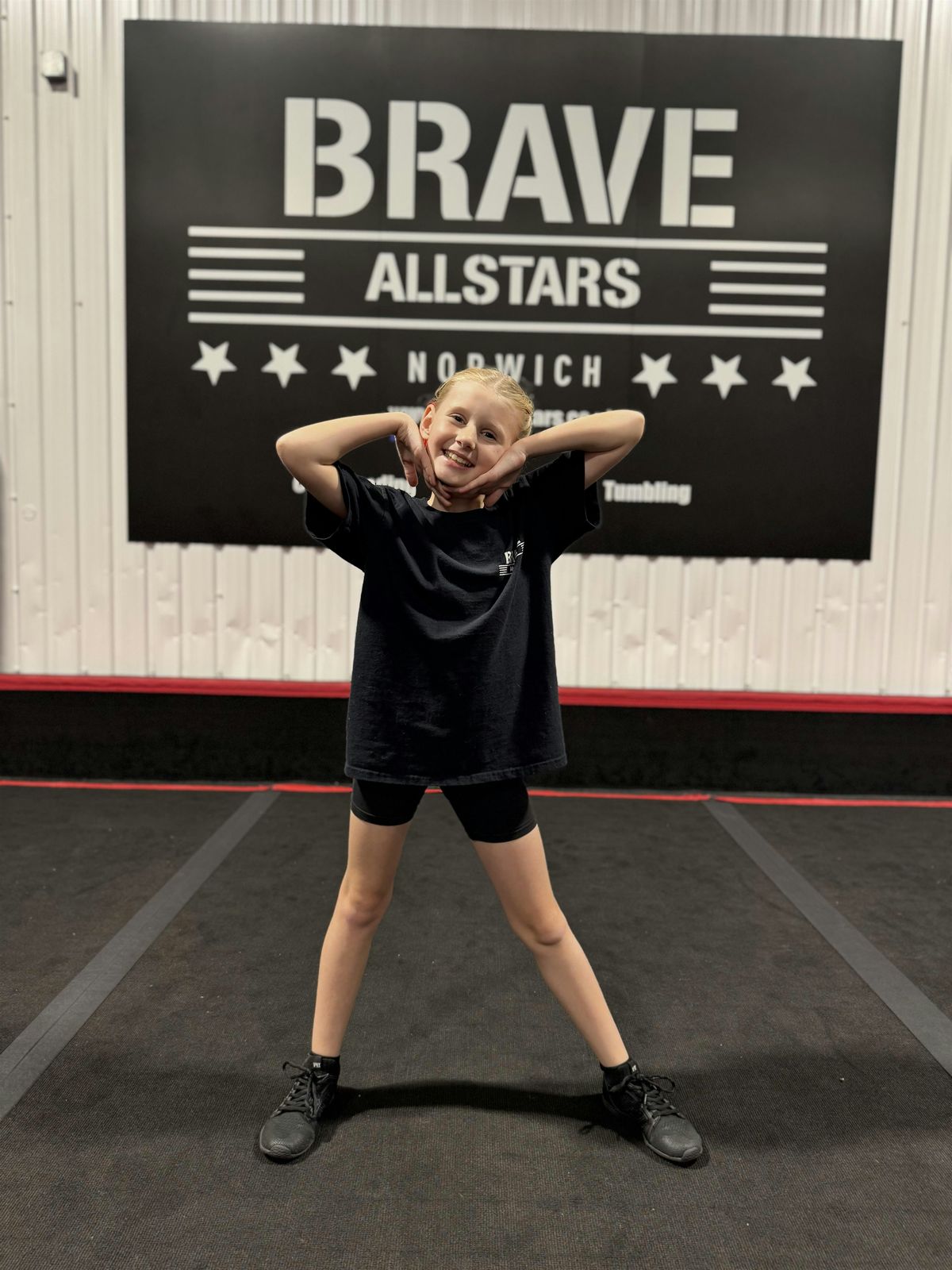 We ask that you bring water in a named bottle, all jewellery is removed or taped up, hair is out of the face in a style that will last the duration of the session, you wear comfortable, sporting clothes along with bare feet or cheer shoes. Brave apparel can be bought from our on site pro shop, but neither the apparel or cheer shoes are compulsory. Our 'Cheer Shoe Recommendation' document can be found on the homepage of our website. We recommend outdoor shoes that can be slipped on and off rather than lace up shoes to avoid congestion. Please note, apparel from other UK Cheerleading programmes is not permitted to be worn. Please be in Brave apparel or generic sports clothing.