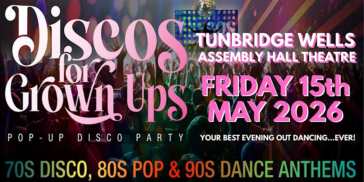 The legendary DISCOS FOR GROWN UPS 70s 80s 90s disco party is coming to the Assembly Hall Theatre, Tunbridge Wells on Friday 15th May 2026 for an incredible boogie night to remember!