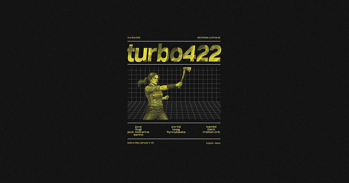 turbo422 would like to acknowledge the original custodians of the land where the event will take place, the wurundjeri people, and pay our respects to their elders past, present and emerging. turbo422 has a strict anti social-behaviour policy. patrons + staff should feel comfortable at all times. report any unwelcome behaviour to staff or crew