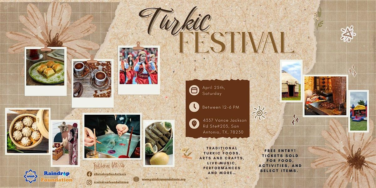 Come join us on Sat, April 25, 2026 at Raindrop Foundation San Antonio for a day filled with delicious food, live music, folk dance and vibrant art performances. Experience the rich heritage of the Turkic (Azerbaijan, Kirgizistan, Kazakhstan, Turkmenistan, Turkiye, and Tajikistan) people through traditional decorations, art displays, and interactive workshops.