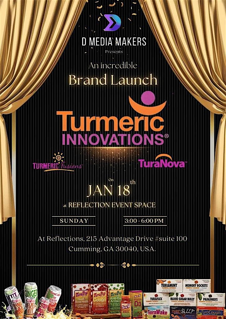 Get ready to experience the latest breakthroughs in turmeric products, all in person! Join us for a fun and laid-back event where you'll discover exciting new flavors, uses, and benefits of turmeric. Come mingle with fellow enthusiasts, chat with the creators, and be among the first to see what's new in the world of turmeric innovations. Don't miss out on this awesome launch party!