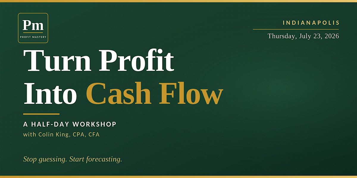July 23 is the half-day introduction. In October, Profit Mastery will run a full two-day Cash Flow Boot Camp in Indianapolis for owners who want to go deeper on the same framework. Every July 23 registrant gets a discount on the October boot camp. Details will be announced in the coming weeks and emailed directly to everyone in the room on July 23.