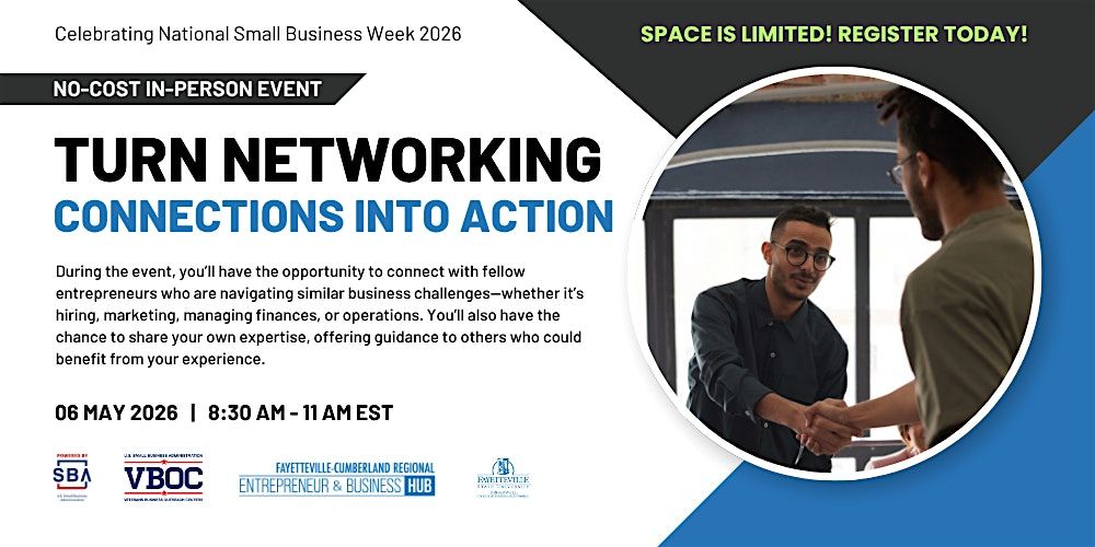 Celebrate National Small Business Week by turning your ideas into action. This interactive networking experience is designed to help you build meaningful connections, share experiences, and gain real solutions to the challenges you’re facing in your business.