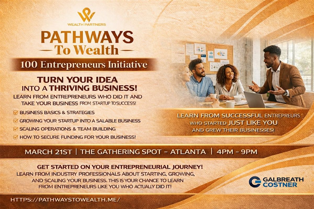 Start, scale & grow your business. Join the Wealth Partners 100 Entrepreneur Initiative at Pathways to Wealth – March 21. Get tickets now!
