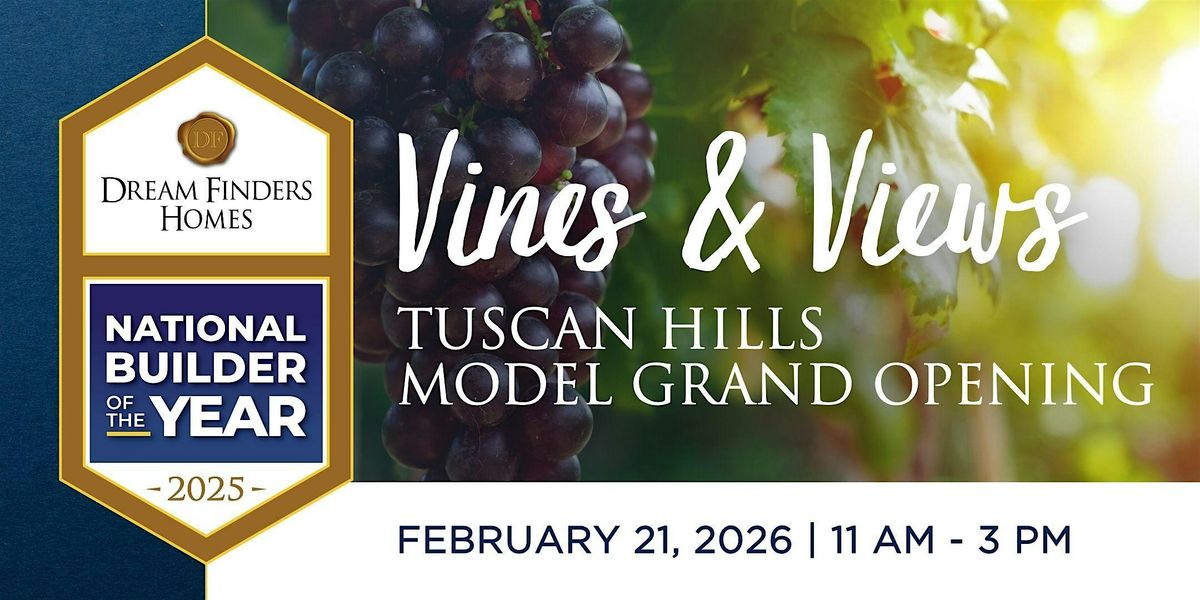 You’re invited to the Tuscan Hills Vines & Views Model Grand Opening on Saturday, 2/21 from 11 AM–3 PM! Realtors and future homebuyers are welcome to tour our beautifully decorated model home while enjoying food trucks, festive fun, and exciting prizes.