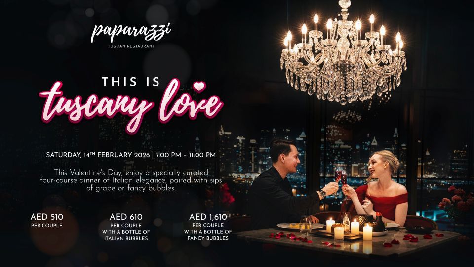 . This Valentine’s Day, step into Paparazzi Tuscan Restaurant and celebrate love with an evening inspired by the romance of Tuscany. Indulge in a four-course Italian dinner, thoughtfully crafted to be shared. Choose to complement the experience with Italian grape or elevate the night with a bottle of fancy bubbles, creating the perfect pairing for a memorable celebration. From the first course to the final toast, every detail is designed for romance, connection and timeless Italian charm.