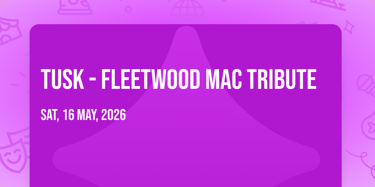 📍 Location: 40.4261, -104.695✨ Experience the magic of Tusk - Fleetwood Mac Tribute, where moments become memories that last a lifetime! 🏛️ The iconic Monfort Concert Hall in Greeley, CO sets the perfect stage for an unforgettable celebration on May 16th, 2026 at 01:30 AM. 🌟 It's been a curated experience that brings together the best of entertainment and innovation, creating an atmosphere of wonder and excitement. From the moment you arrive, you'll be immersed in a world where the ordinary transforms into the extraordinary. 🎊 Book early to secure your place in what promises to be an event that will be talked about for years to come!