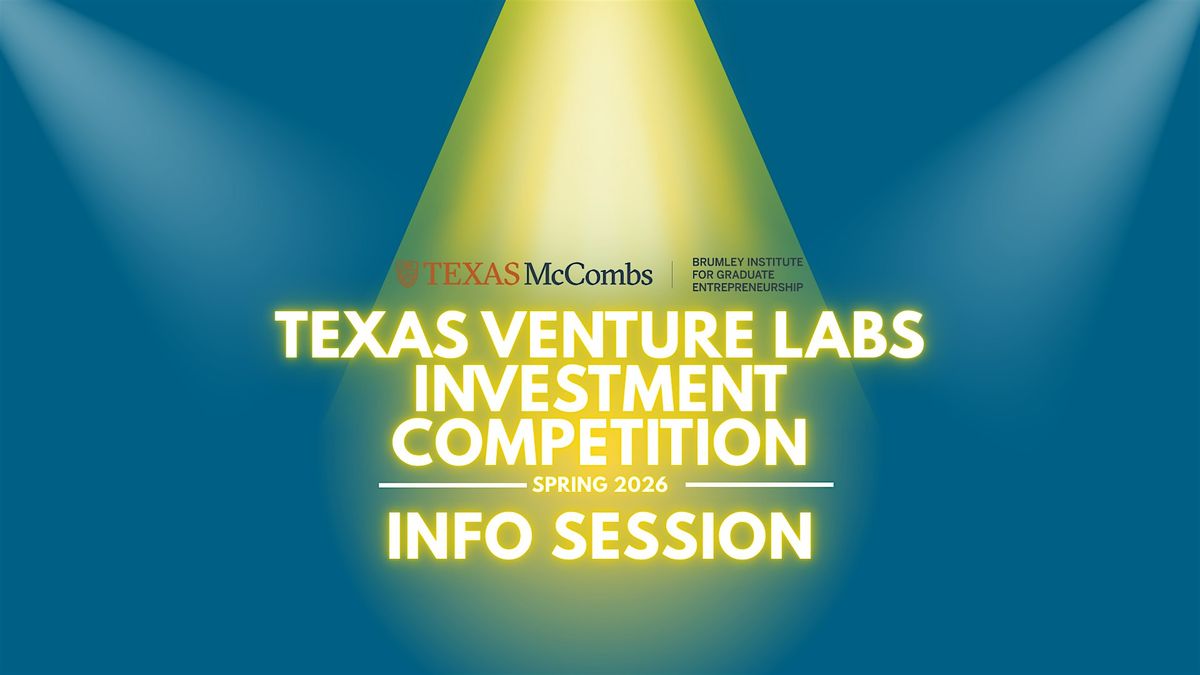 Are you a UT graduate student considering pitching in the TVL Investment Competition? Join us at this info session to learn more. The Texas Venture Labs Investment Competition (TVLIC) simulates the real-world process of raising venture capital. Whether you're an aspiring grad student entrepreneur or simply curious about the competition, this event is your opportunity to learn more about the event happening this spring.