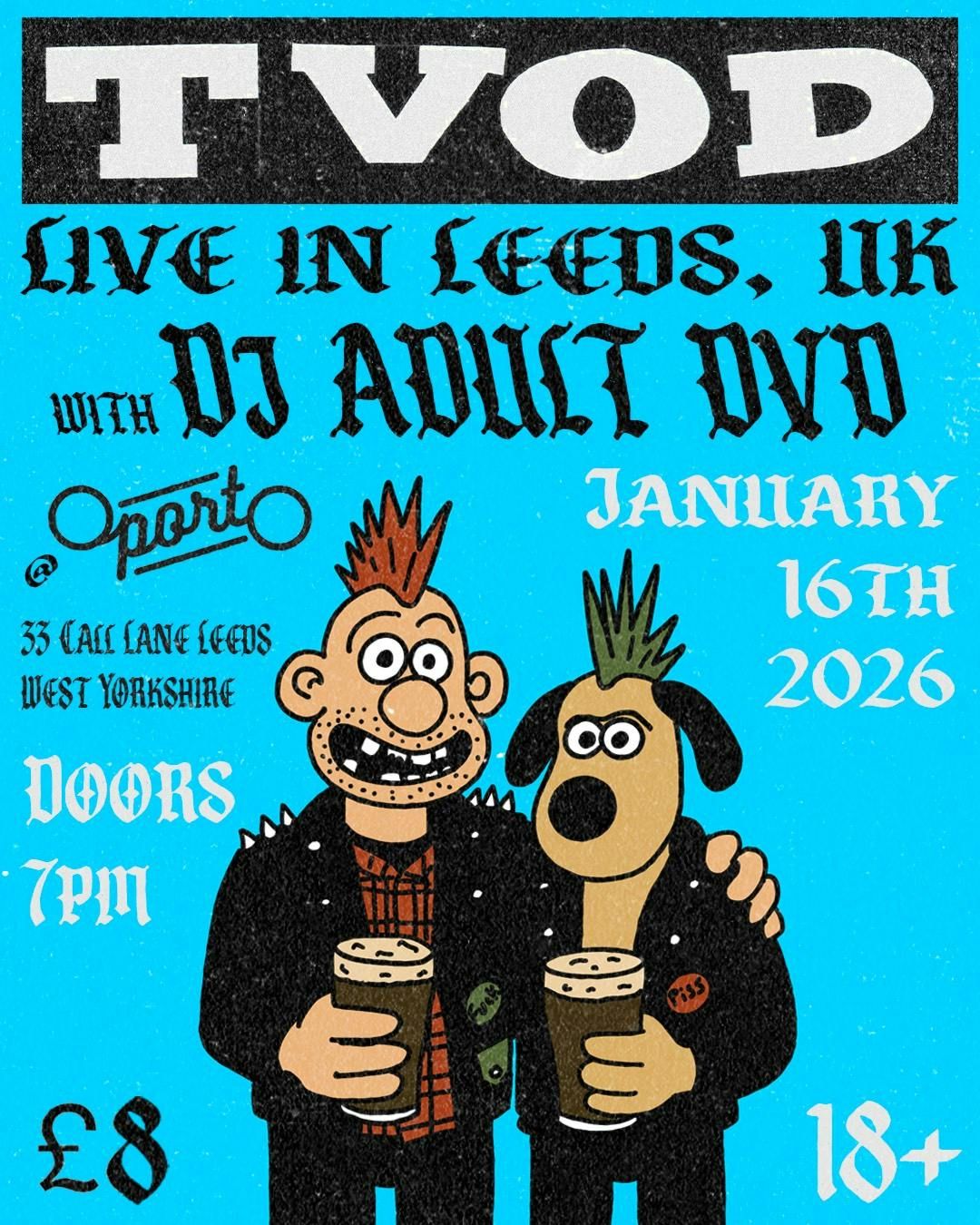 Adult DVD & Oporto present...TVOD (Yes, that stands for Television Overdose) is a rowdy, Brooklyn-based, 6-piece outfit lead by Tyler Wright on vocals.TVOD is influenced by post-punk, egg-punk and krautrock, and they weave their influences in a seamless way that seems both effortless and highly-energetic.